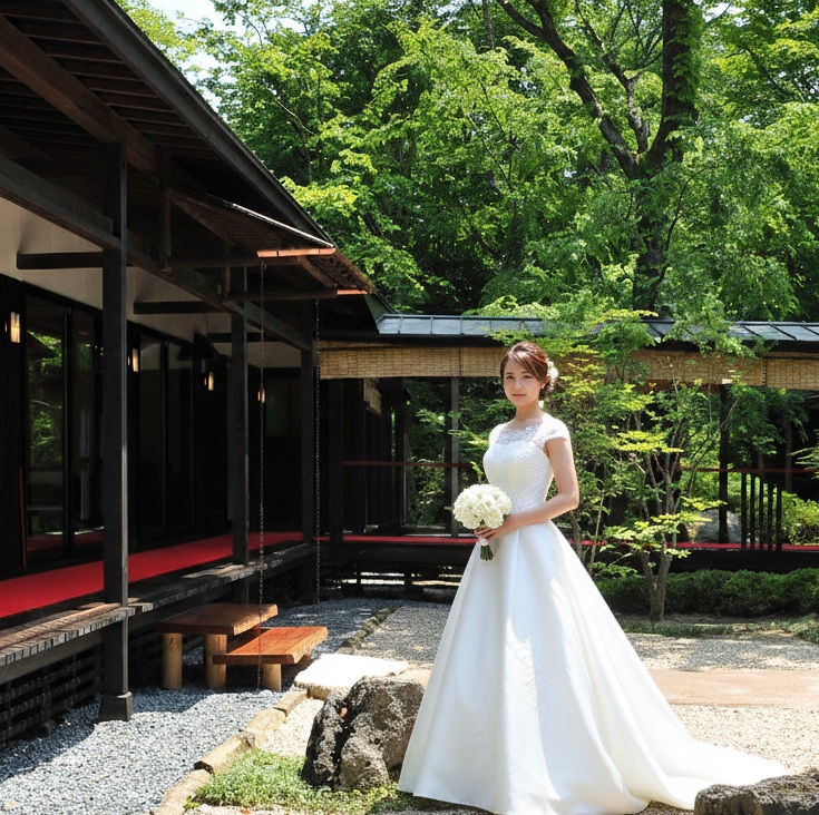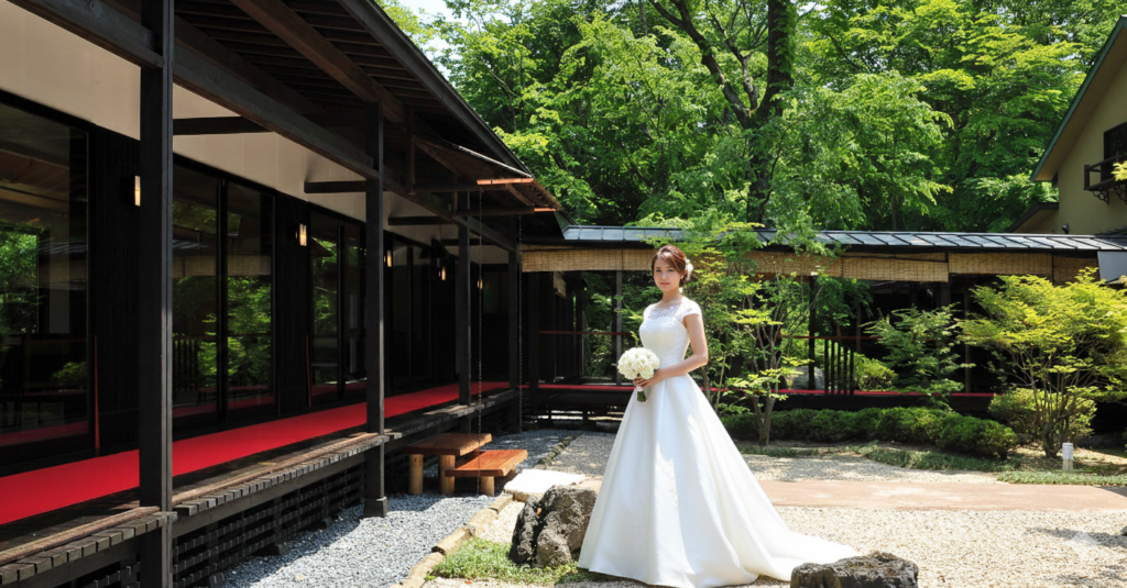 挙式は店内での三三九度やお庭でのガーデンウェディングによる人前式を行います。