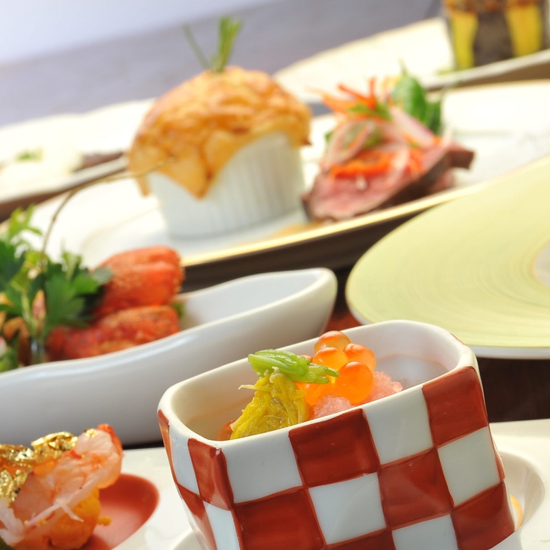 旬の食材を取り入れた季節感を感じさせる創作フレンチ料理。お客様のご要望に応じて、和食、中華、エスニック料理にもできますのでご相談ください。